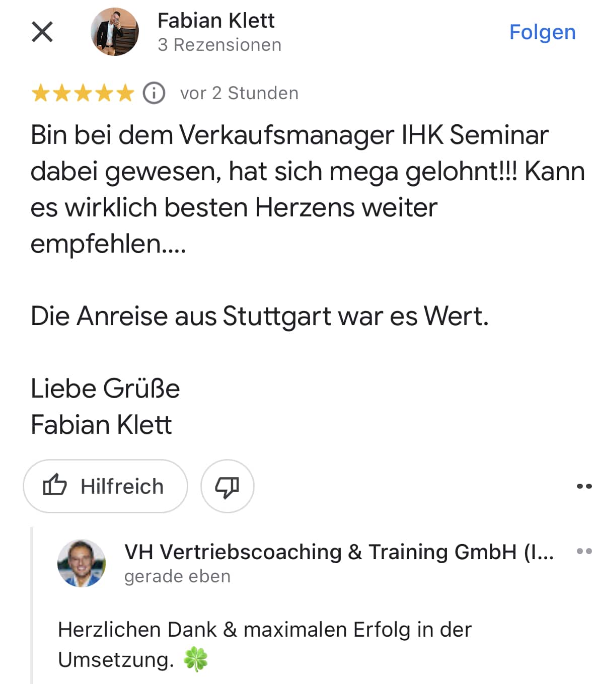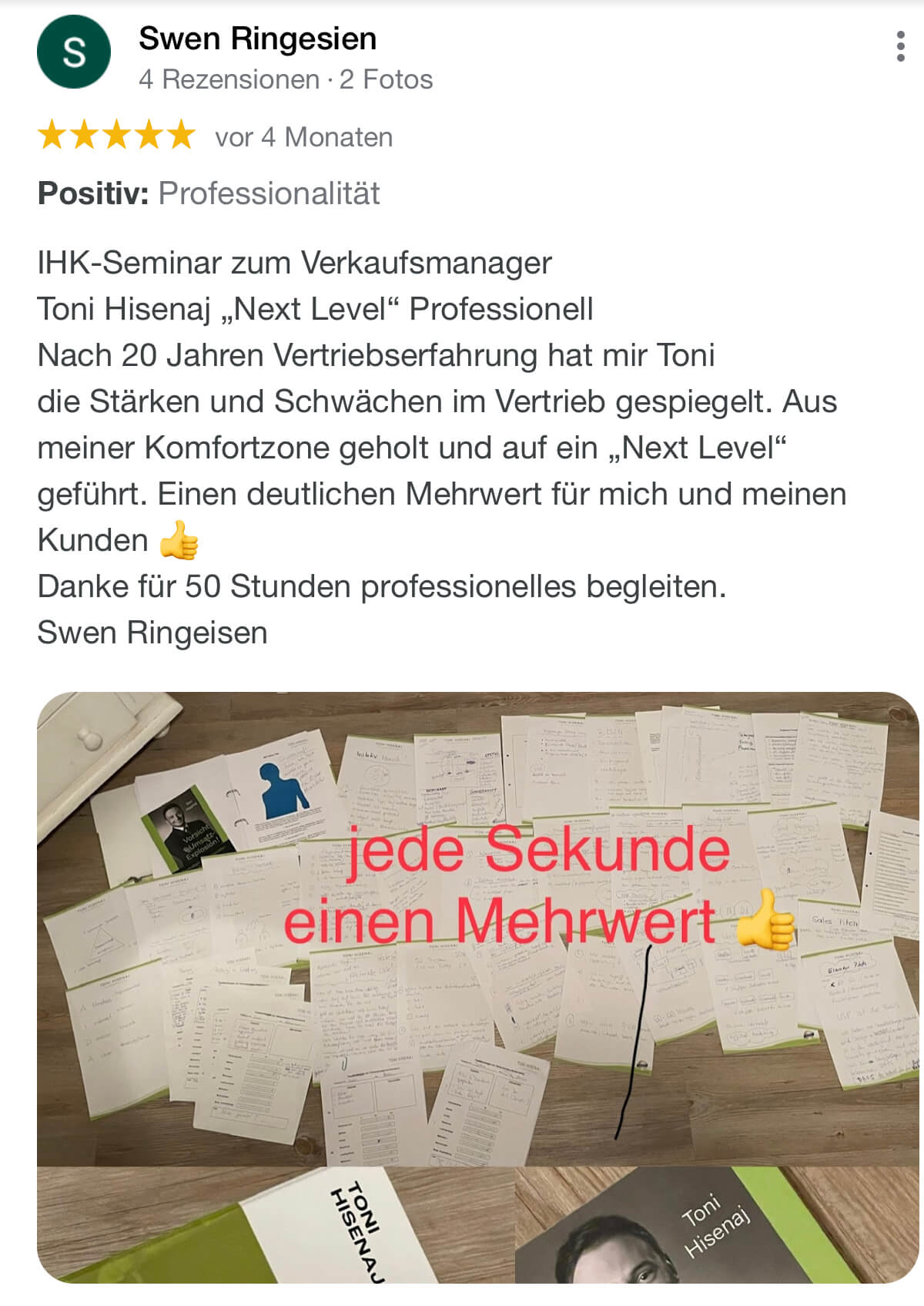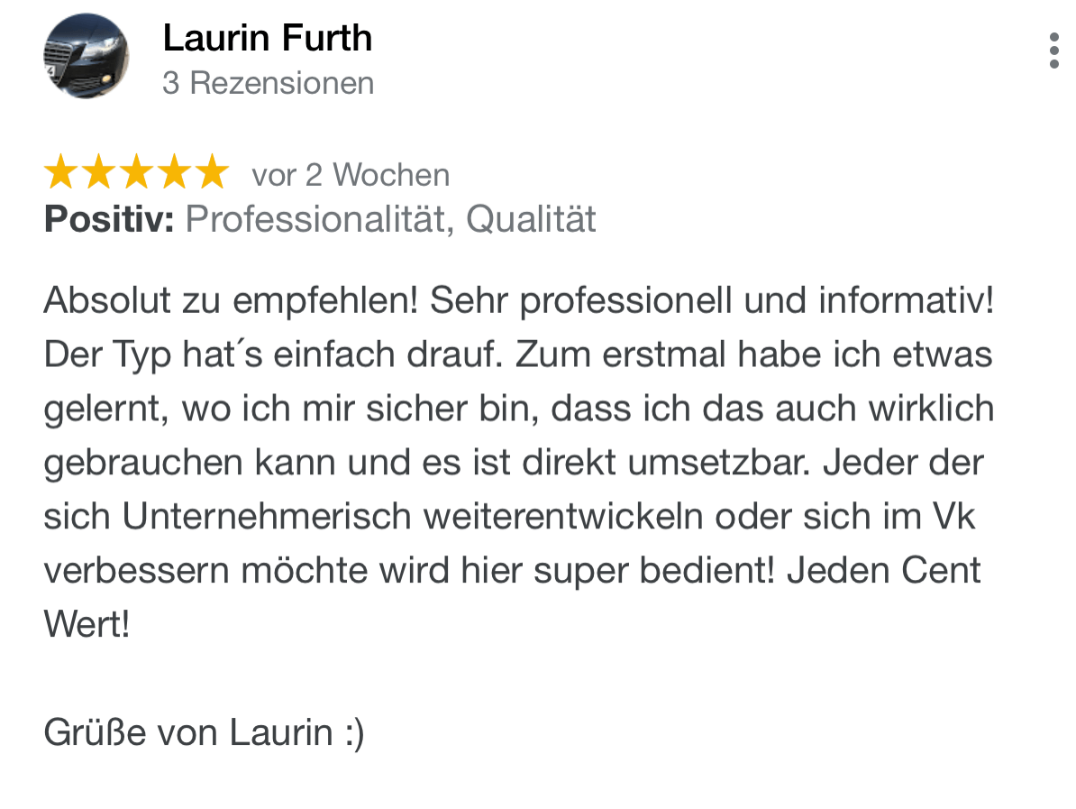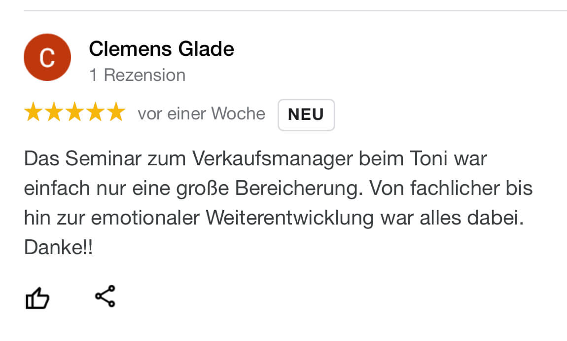 „Wer sich im Kundengespräch unsicher fühlt und gerne mehr verkaufen möchte, der sollte sich zum nächsten Seminar anmelden!“