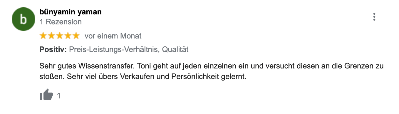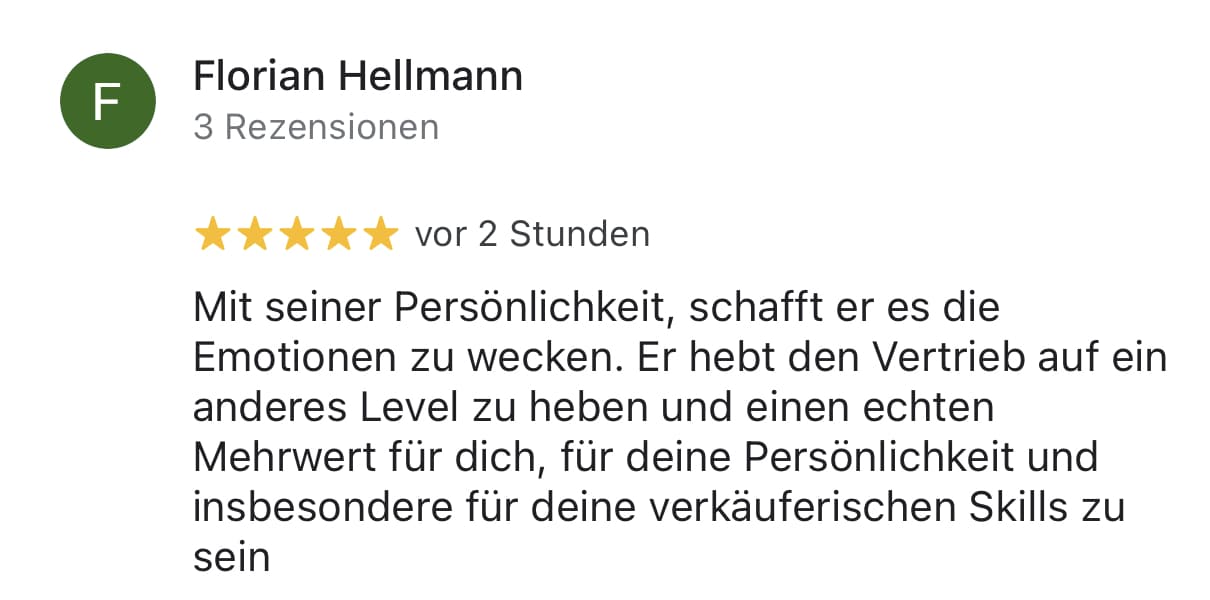 „Viel mehr als ein Verkaufsseminar! Es geht weit über Techniken hinaus, man lernet viel über seine eigene Persönlichkeit.“