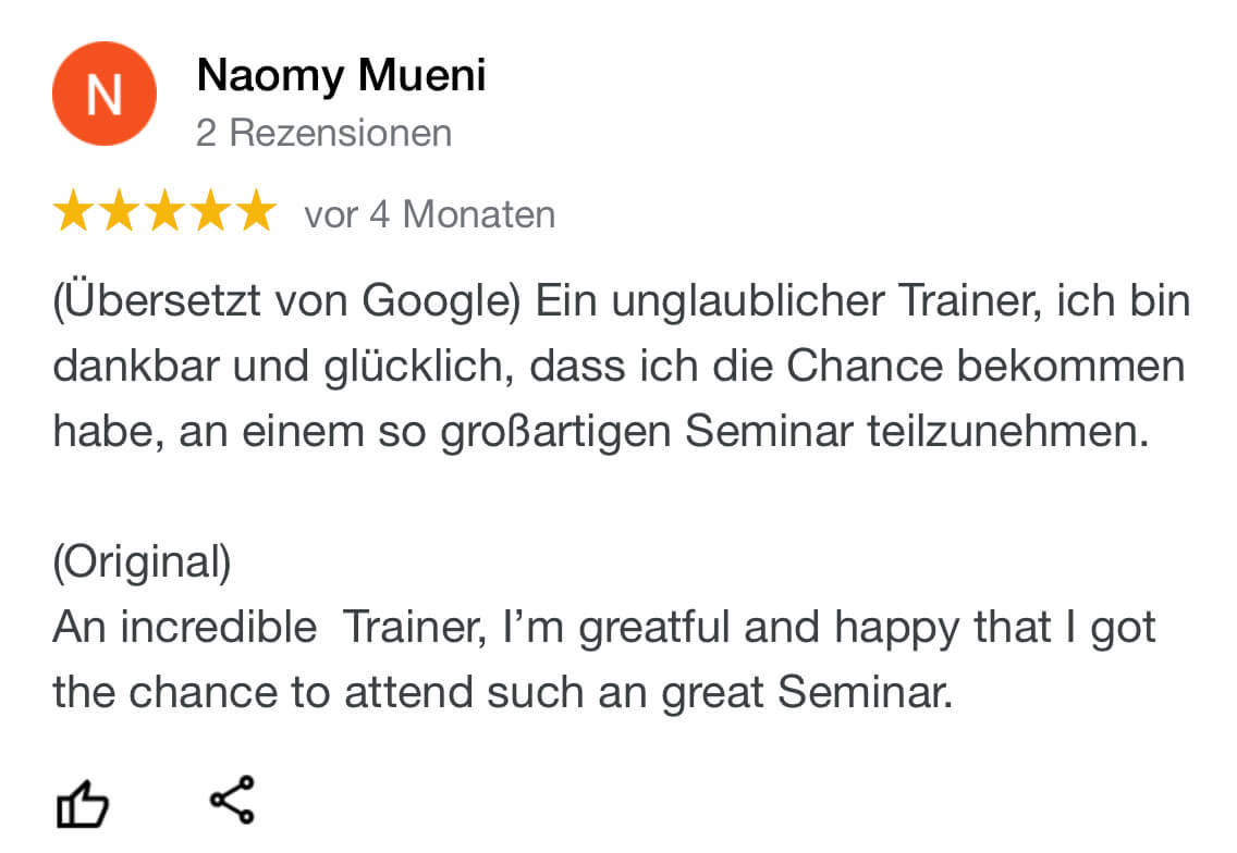 „Kein Vergleich zu anderen Seminaren. Ich habe endlich das gefunden, wonach ich so lange gesucht habe. Das Seminar war die beste Entscheidung.“